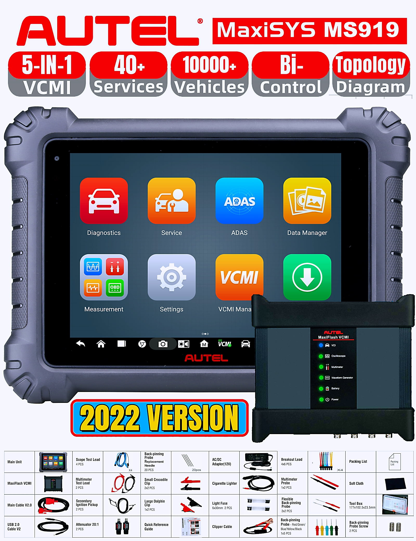 Autel Maxisys Ms919 2022 Version 5in1 Vcmi Full System Diagnositc Bi Directional Control Ecu Coding Topology Mapping 40 Services Advanced Ms909 Ms Elite Ms906 Ms908 Ts608 Lite Of Ms Ultra Walmart Com